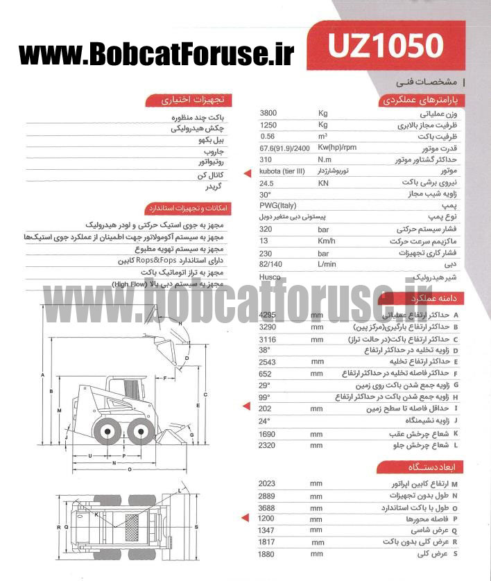 موتور: کوبوتا ژاپن، توربوشارژ، 92 اسب بخار